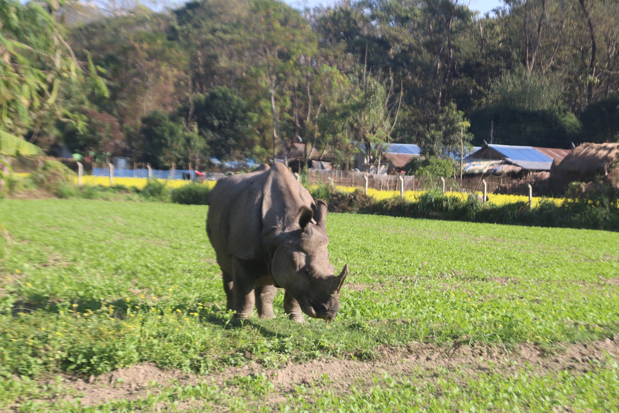 चितवनमा बस्ती पसेको गैँडालाई गरियो स्थानान्तरण