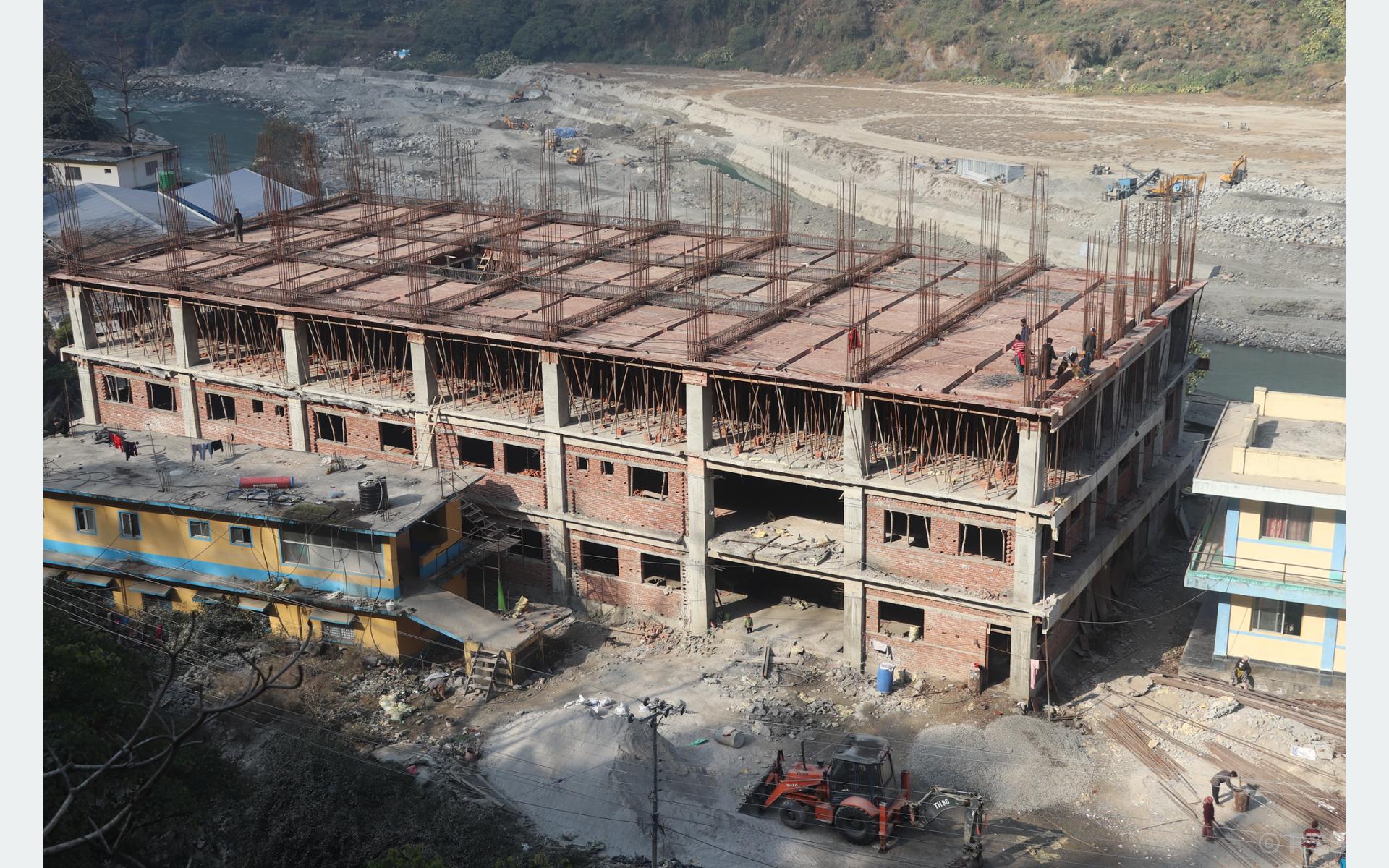 निर्माण कम्पनीका सब–इन्जिनियर गोकर्ण जोशीका अनुसार हाल अस्पताल भवनको तेस्रो तला ढलानको काम भइरहेको छ । “काम निरन्तर भइरहे जस्तो देखिए पनि उल्लेख्य भौतिक प्रगति देखिएको छैन”, उहाँले भन्नुभयो । गत वर्ष २०८२ मङ्सिर मसान्तसम्म म्याद थप गरिएको भए पनि उक्त म्यादसमेत सकिएको उहाँको भनाइ छ । अहिले पनि काम जारी छ । भवनको तेस्रो तला ढलान गरिएको छ । भवन निर्माणका लागि म्याद थपको प्रक्रिया चलिरहेको निर्माण कम्पनीले जनाएको छ ।