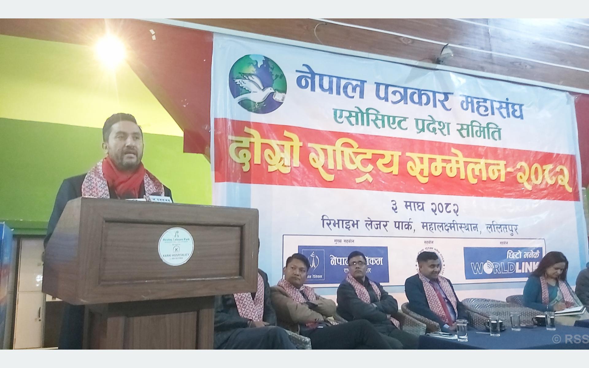 नेपाल पत्रकार महासङ्घ एसोसिएट प्रदेशको आयोजनामा आज ललितपुरको महालक्ष्मीस्थानमा भएको दोस्रो राष्ट्रिय सम्मेलनमा उहाँले सञ्चारकर्मीहरु हरेक क्षेत्रमा निपुण भएकाले अब बन्ने सरकारका पनि उनीहरुको प्रतिनिधित्व हुनुपर्ने बताउनुभयो ।