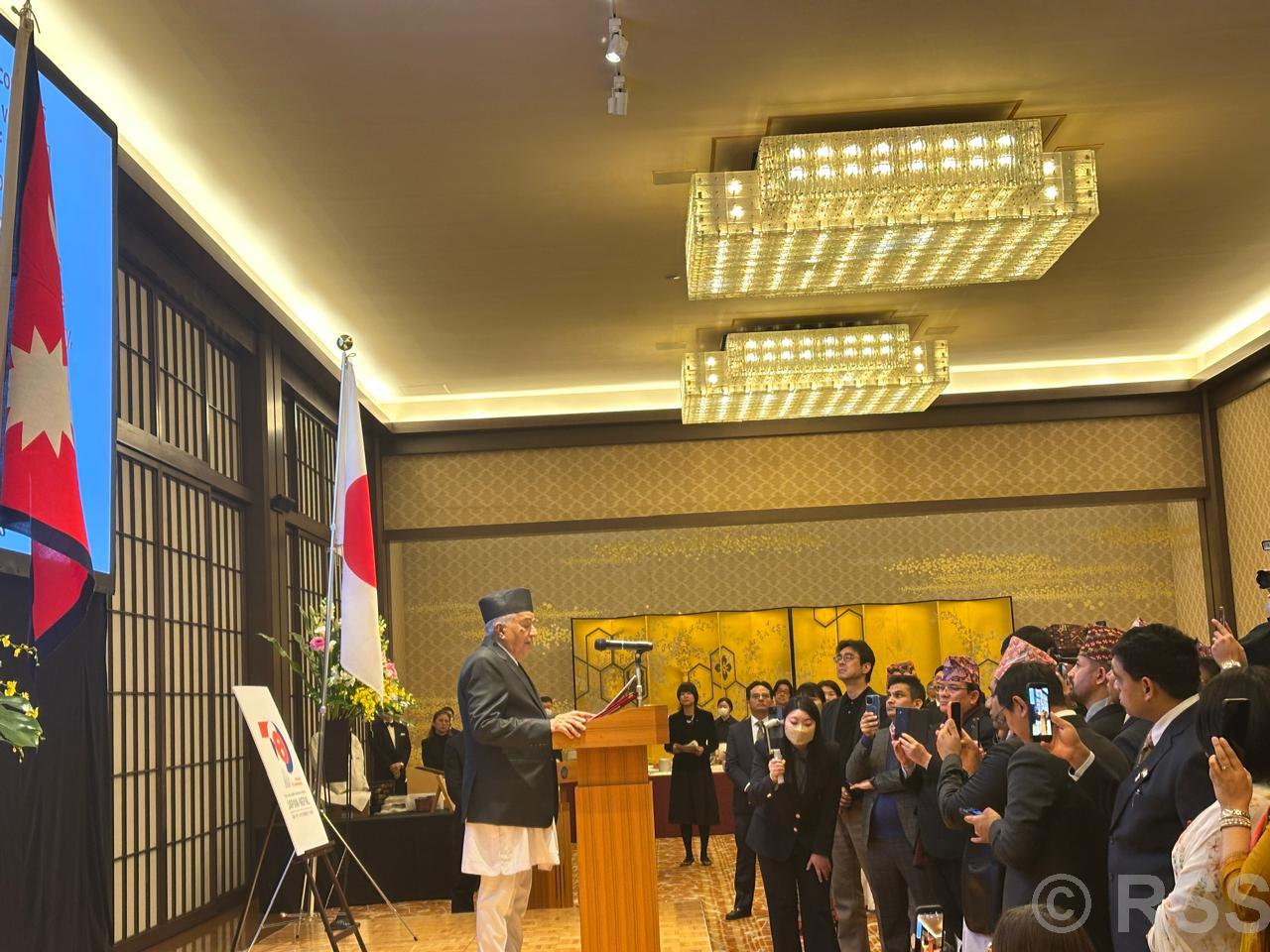 नेपाल र जापानबीच कूटनीतिक सम्बन्ध स्थापनाको ७०औँ वार्षिकोत्सव मनाउन आज जापानको राजधानी टोकियोमा आयोजित विशेष समारोहलाई सम्बोधन गर्दै राष्ट्रपति पौडेलले सो आग्रह गर्नुभएको हो । उहाँले राजनीतिक मुद्दालाई निष्कर्षमा पु¥याएपश्चात् नेपालको प्राथमिकता अब नेपाली जनताको द्रुत सामाजिक–आर्थिक विकास, प्रगति र समृद्धि हासिल गर्नुमा केन्द्रित रहेको बताउनुभएको राष्ट्रपति पौडेलका प्रेस सल्लाहकार किरण पोखरेलले जानकारी दिनुभयो ।