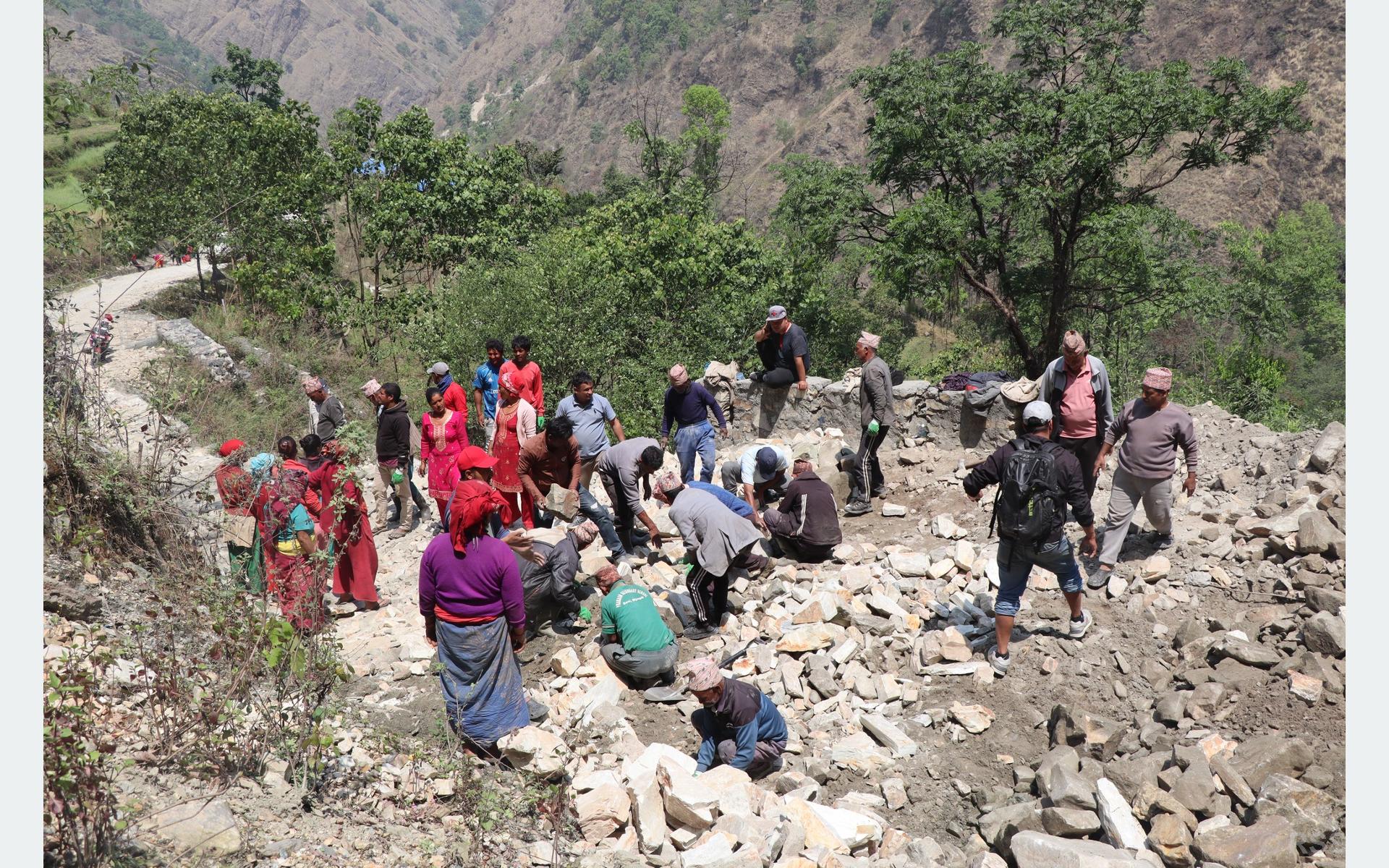 सङ्घीय सरकारले बजेट विनियोजन गरेको योजना कार्यान्वयनमा भएको ढिलाइका कारण जोखिम बढेपछि समुदायस्तरमा श्रमदान गरेर अस्थायी रूपमा मर्मत थालिएको वडाध्यक्ष रामबहादुर खड्काले बताउनुभयो ।